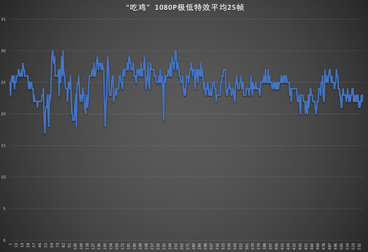 “吃鸡”绝地求生:作为一款出名没优化的游戏,所以我画面设置直接为最低,平均帧数25,这个帧数表现不算理想,建议等后续驱动跟游戏优化了。