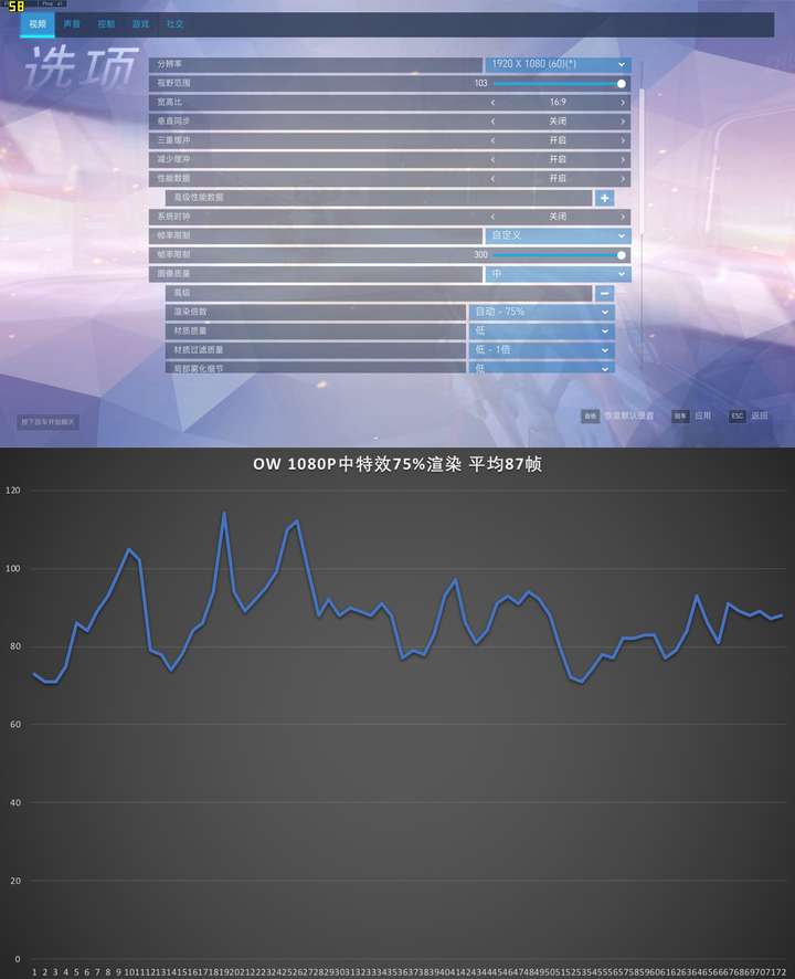 OW:OW在中等特效情况下(75%渲染),Ryzen 3 2200G平均帧数可以实现87,如果对于画质不算很敏感的用户来说,这个成绩也算可玩。另外个人是感觉目前驱动确实有问题,因为选择100%渲染降速太严重,超过正常降速范围,所以感觉后续可能还有优化空间。