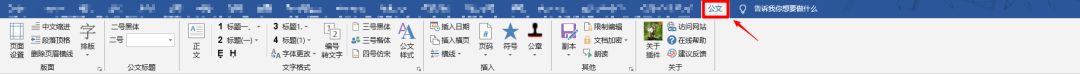 安装好后,在Word菜单栏上会有〔公文〕标签显示: