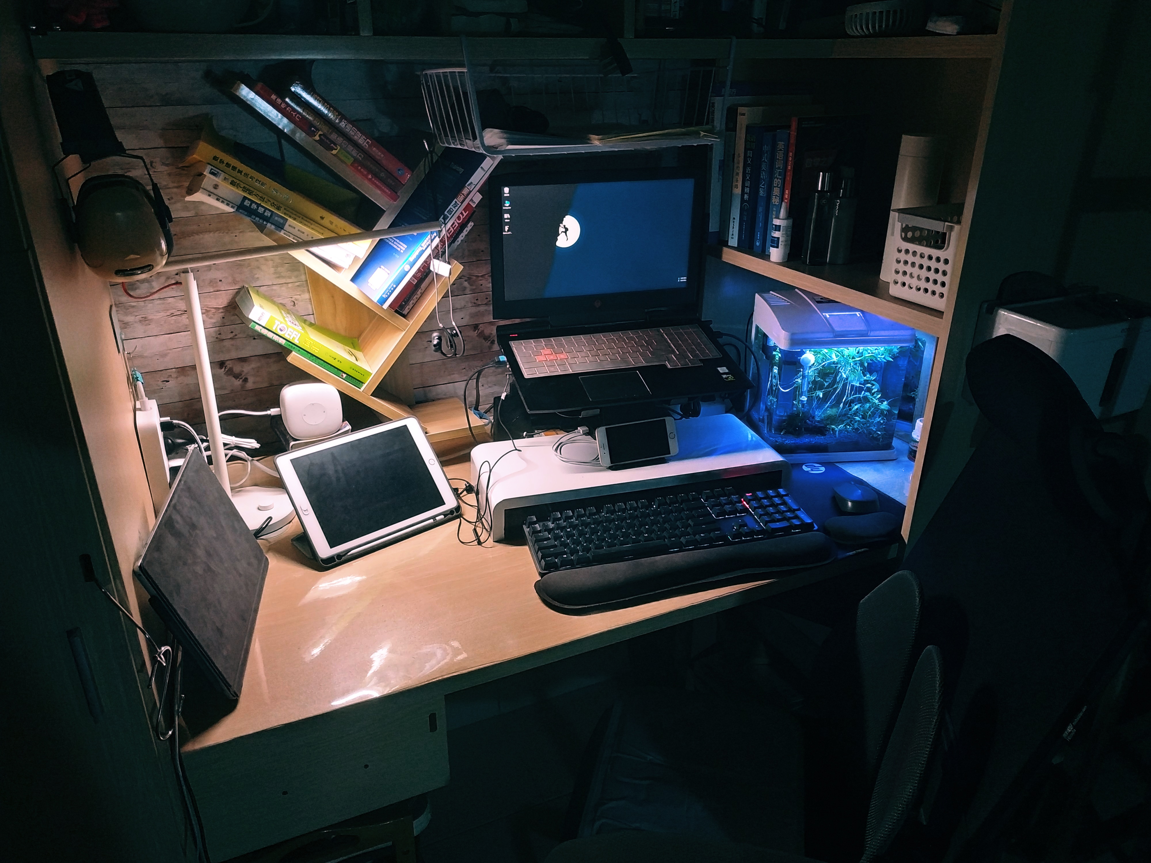 原来买的暗夜精灵基本当成台式机使用。并且由于使用了显示器增高架,连了键盘和无线鼠标。iPad 基本就是手写录入设备(小小地吐槽:原来的 Surface pro 几经调试,偏移仍然十分严重🤷♀️)。