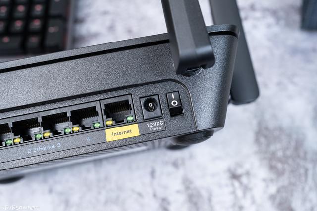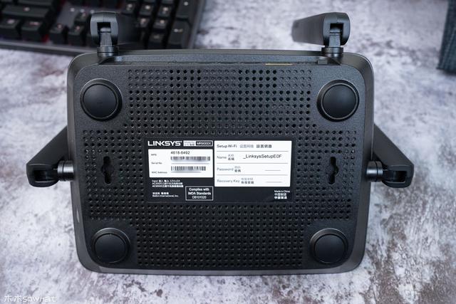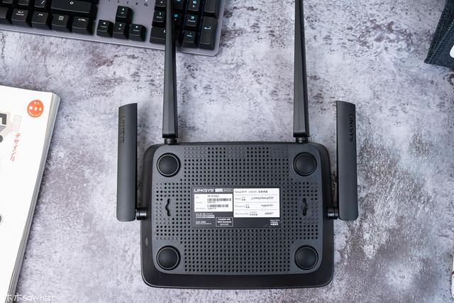 这款路由器采用四天线设计,天线高低搭配,也是为了实现更好的信号覆盖。