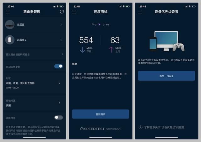 设置上基本上也是傻瓜化了,一步一步来就行,测个速先,楼主家的500M/50M的网络,速度测试没问题,既然电竞路由器,自然提供了专门的电竞功能,可以把游戏终端添加到优先网络中,这样可以显著降低游戏终端游戏时的延迟。