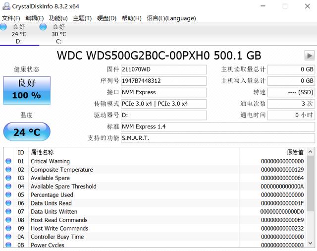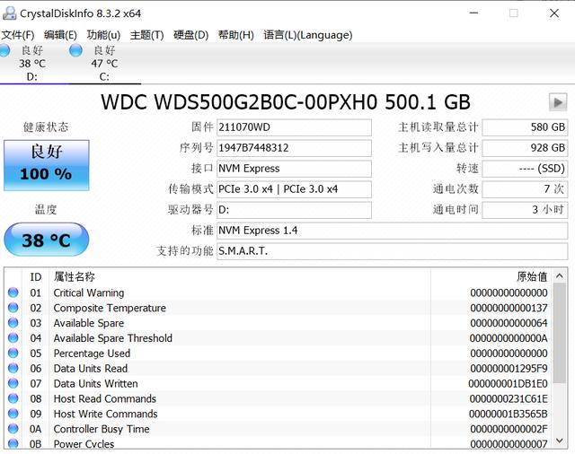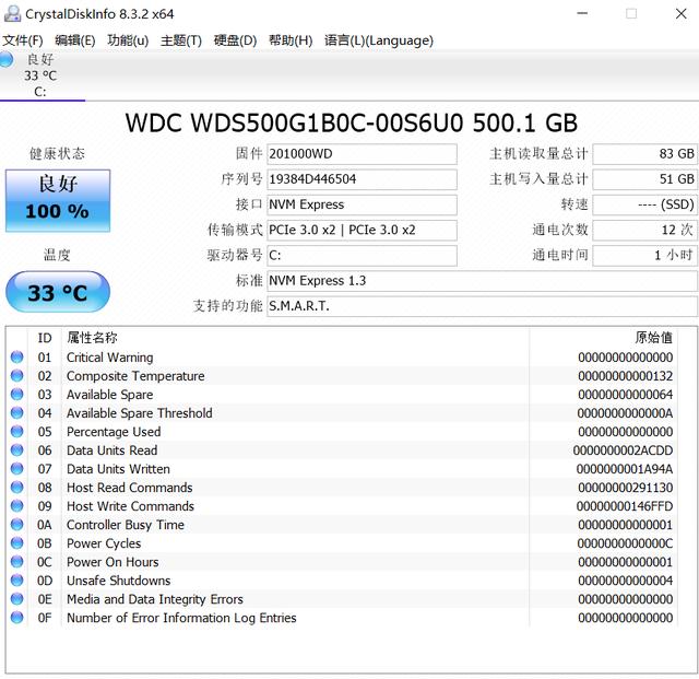软件并没有把硬盘识别成具体的SN550,而是用了500后面的G1、G2来区分。固件不一样,PCIE3.0*2变成了PCIE3.0*4.