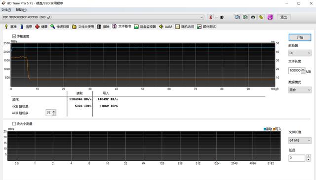 在我使用HD Tune Pro测试写入100G大文件的时候,得出了这样的成绩。