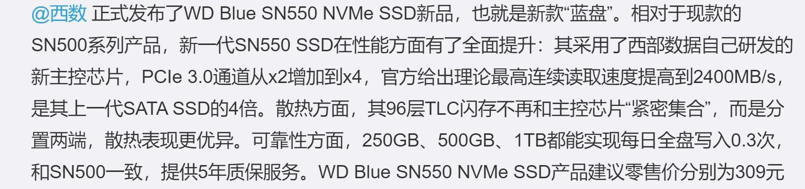 那么西数的回应可以说是非常迅速,非常快的拿出了SN500的升级版SN550。本身呢我就在准备一期中端NVME固态的横评,结果在写稿子的时候,突然杀出一个西数SN550,这就搞的人很措手不及,那没办法,我手里正好有一个西数SN500,为了做评测,为了满足自己的好奇心,预约了首发,18号早上付的款,下午就到了。