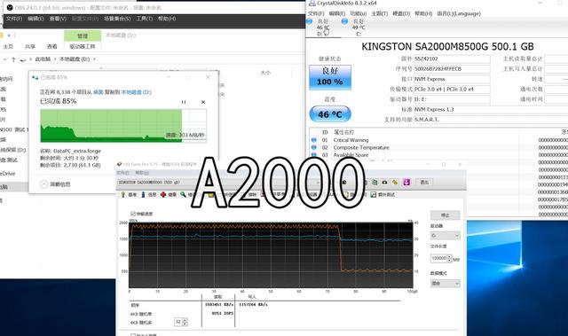 最后一位参赛选手,来自老牌存储厂商,金士顿的 A2000,慧荣2263XT主控,颗粒官方并没有说明是谁家的,我们拿到的这个是镁光的。