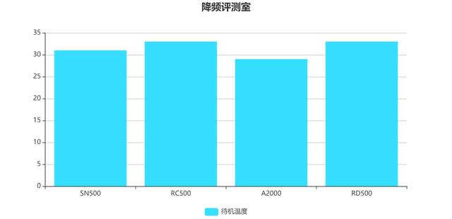 在全盘写入时也会测试最高温度,这几款硬盘的温度都不高,在裸盘时,待机温度几乎一样,都在30度附近。
