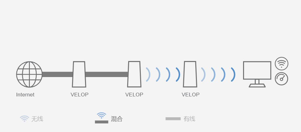 说起Mesh这个单词,英文含义非常简单,就是网、网格、网状物。从它的基本定义来讲,网状网络的拓扑结构是:网络中所有的节点都互相连接,并且每一个节点至少连接其他两个节点,所有的节点之间形成一个整体的网络。在有线时代,由于网线的存在,要实现Mesh布局的网络显得非常困难。不过在无线时代,由于脱离了网线的羁绊,再通过各种全新技术的应用,无线Mesh网络的布局就显得容易了,要想在家中实现无缝漫游,同样也需要Mesh网络的支持。 以Velop为例,无线Mesh网络具有如下特点: