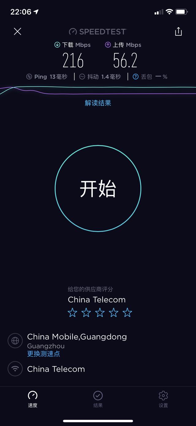 先测试无线回程状态下子切点的连接速率,下载达到了216MB/s,上传为56MB/s,多次测试也基本是这个数值,说明无线回程时的稳定性不错。鉴于AC3900为双频1300Mbps的速率,这个速率楼主表示满意。