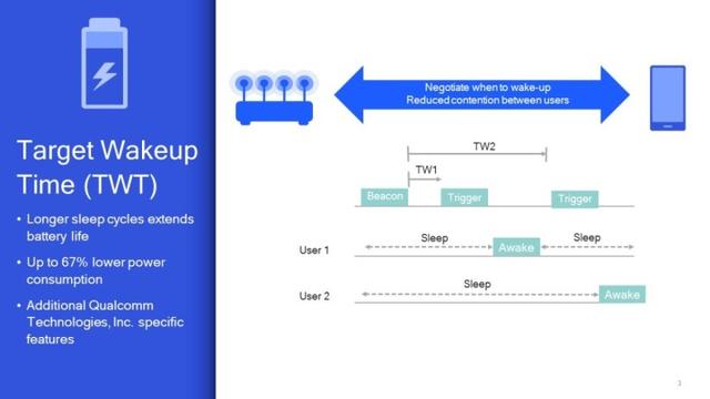 3、让 IoT 设备(家庭智能设备)更省电 除了提升手机及电脑的连线速度外,随著 IoT 设备越来越流行,例如智能家居有智能灯泡、智能开关、各种感应器等等, 802.11ax 就加入了 Target Wake Time( TWT )机制,让 AP 与 20MHz 的低速 IoT 设备协商,究竟装置会在何时传送及接收资料,并在“时间表”记下这个“传输时段”。当现在不是传输时间, IoT 设备便会“休眠”省电。而且 AP 也可排好时间表,确保 IoT 设备“醒来”传输时,没有其他 IoT 装置撞时间一起传输,有效减少冲突。