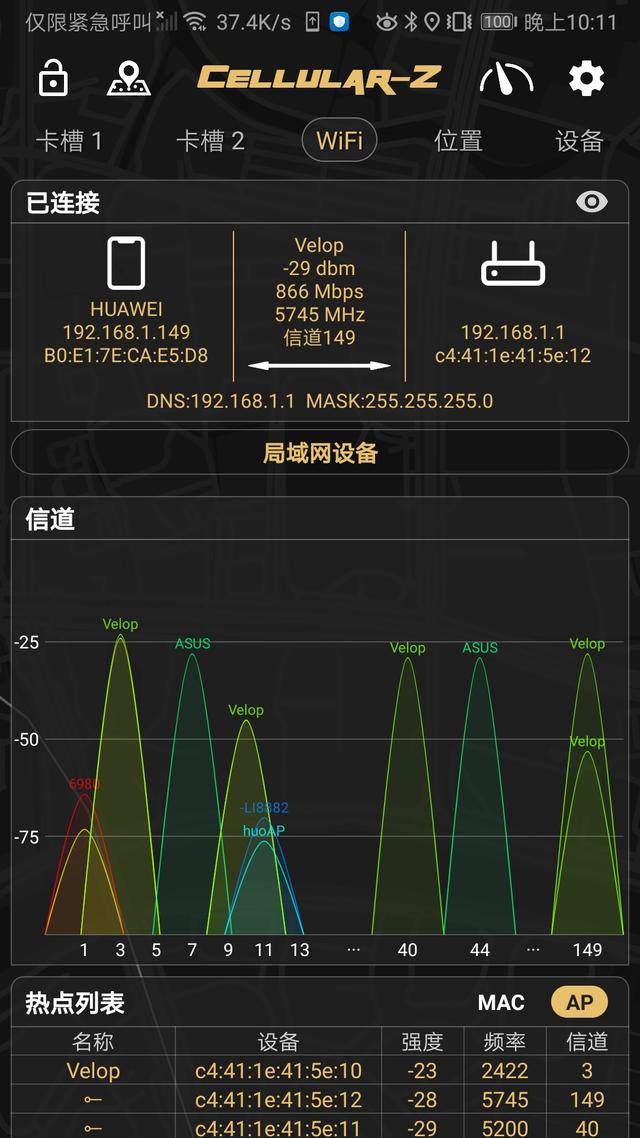 先将Linksys MX5300的SSID设为Velop,用华硕ROG AC5300简单对比下信号强度,5G频段和2.4频段上Velop均优于华硕ROG AC5300,得益于Mesh网络的加持,楼主拿着手机跑了一圈,全屋信号覆盖无死角。