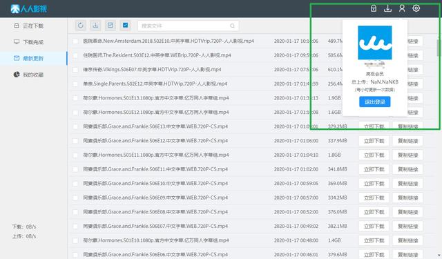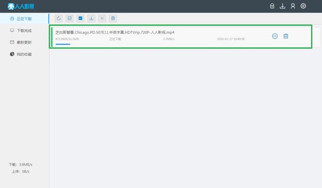 随便下载一个剧集进行测试,因为是采用BT协议,所以热门剧集下载速度还是很快的,当然也会有一定的上传量。