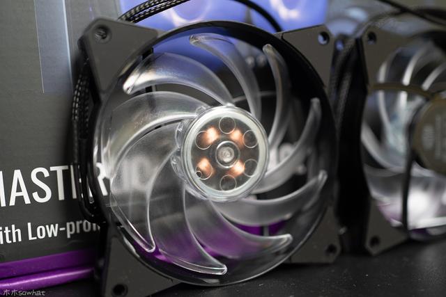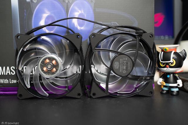 2个120mmRGB均衡风扇做工和用料都非常扎实,新的驱动设计有效降低风扇震动并减轻噪音,螺丝孔部位还有橡胶垫减震。