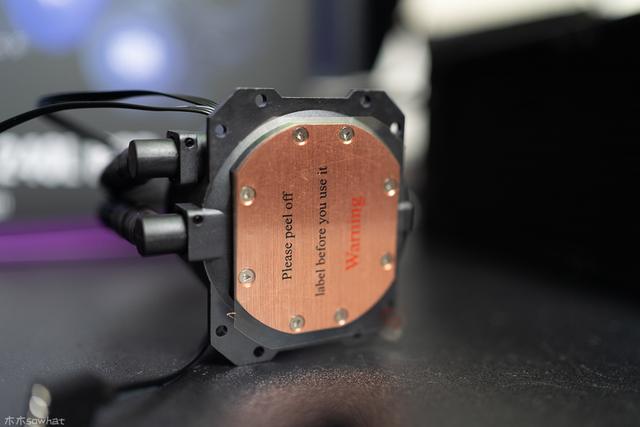 水冷头底座为采用拉丝工艺处理的纯铜材料,在填补硅脂后能够保证和处理器顶盖有很好的接触,保证高效将热量传递出去。