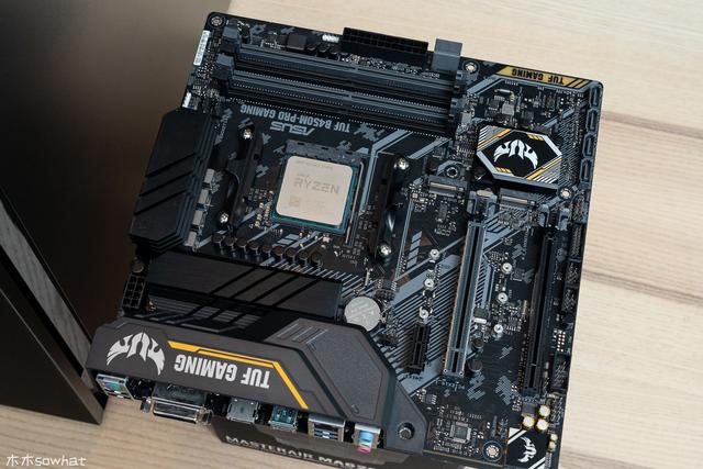 主板上,楼主此次使用的是华硕TUF B450M-PRO GAMING主板,采用军规级认证材料,支持华硕的Aura Sync RGB 神光同步技术,支持各种 Aura Sync 兼容设备。其本身就是为应对三代锐龙新推出的B450加强板,和三代锐龙搭配能形成性价比超高的板U组合,当然,应付3950X稍有点吃力,不过正好可以看出这款主板的水平。