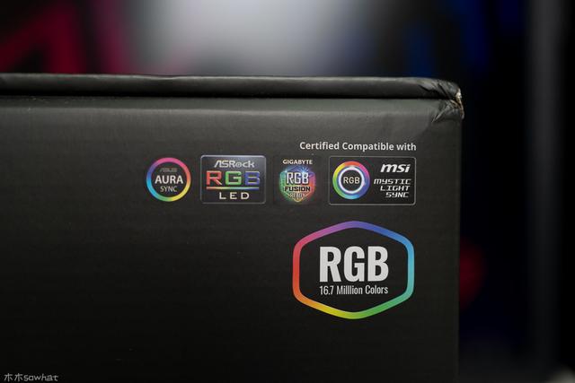 黑色的底色配合产品图有种神秘感,右上角则是灯效支持的主板灯光系统,华硕、华擎、技嘉、微星几家的灯效系统都支持,可以说覆盖了目前主流的主板厂商。