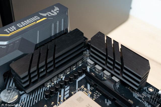 可以看到这款主板上散热片面积还是比较大的,可以有效降低各元件的热量,让主板工作更稳定。