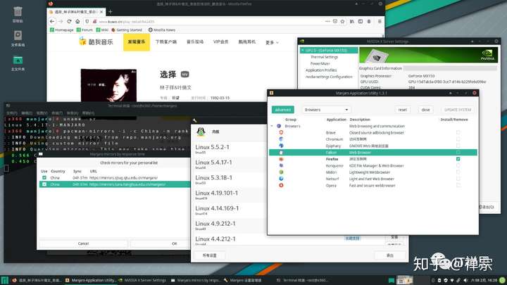今天刚发布的19.0Pre5测试版本,是Manjaro一次新的尝试:基于Linux 5.4内核的,能方便更新到最新的Kernel 5.5.2;主题更新,有更好的硬件支撑,引入了NVIDIA PRIME支持,这是让禅宗最感欣喜的一点,双显卡的本本终于可以不用折腾啦,当然,新版本也包括了基于Arch Linux平台的许多其他包的更新。