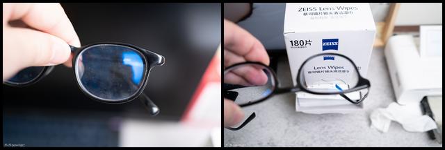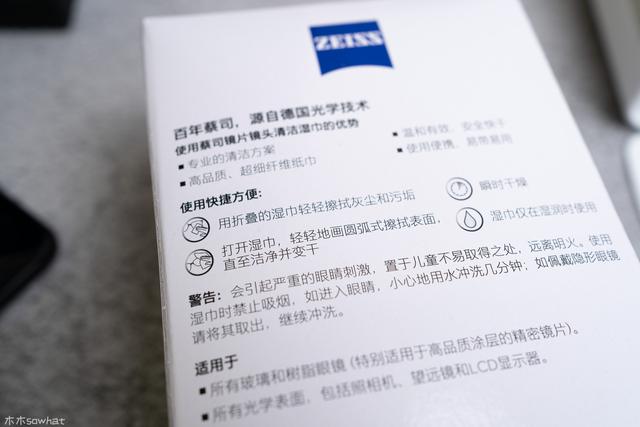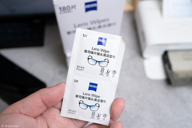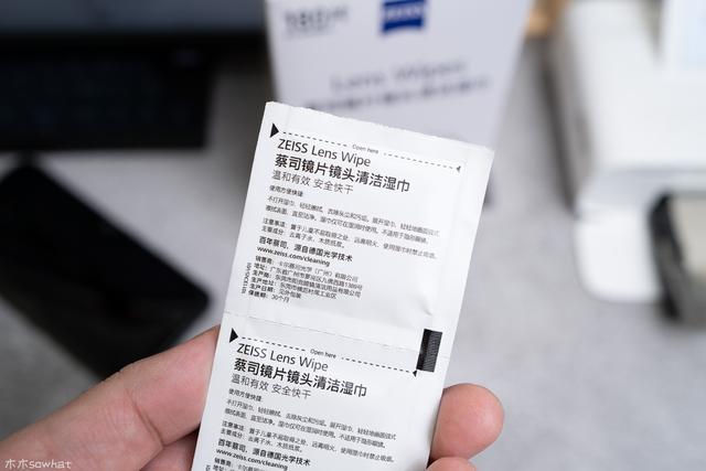 再来看镜头,镜头上如果沾了指纹清理起来比较麻烦,用蔡司的清洁湿巾可以轻松擦除,也不用担心损坏镀膜。