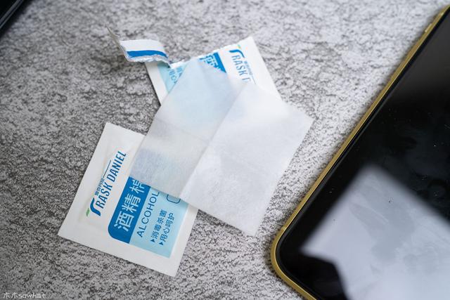 这是之前用的酒精棉片,首先面积太小,再者擦完后痕迹比较重,会留下比较明显的水印,而且残留的酒精味也比较重。