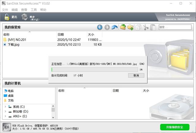 闪迪则提供了SanDiskSecureAccess这款软件。楼主之前使用闪迪U盘的时候曾经试用过,非常不好用,文件如果要存到加密分区的话,必须得通过通过SanDiskSecureAccess的界面拖进移动硬盘里,如果一次拖的文件比较多,软件也会加上加密的时间,所以相对要耗时很多,而如果要使用其中的同步功能还需要另外付费,这就略坑了。不过可设置选项相比三星多了不少,同时也有了私人区和公共区的区分,这点上还不错。