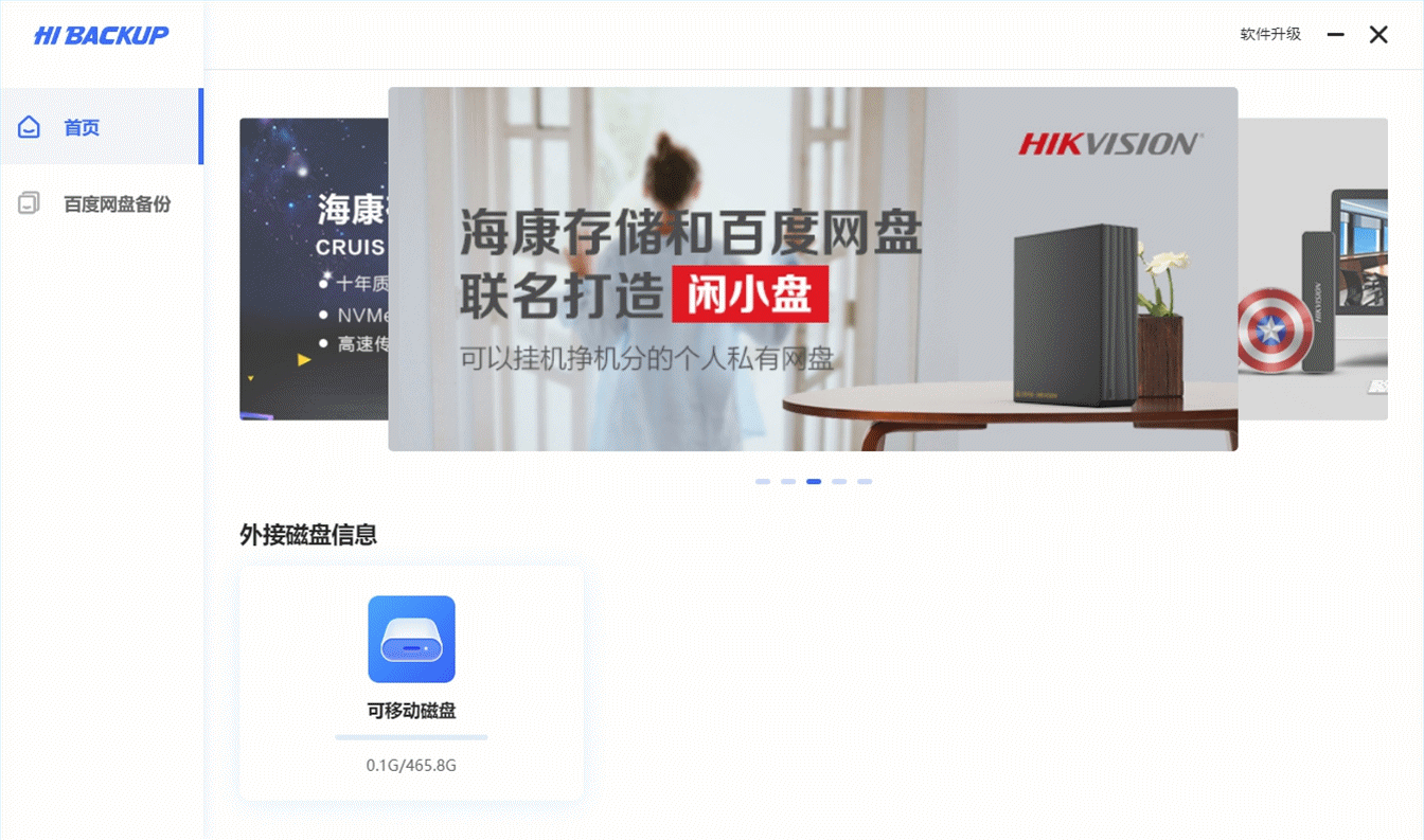 Hi Backup则是海康和百度网盘联合打造的一款软件,登录自己的百度网盘账号后,就可以选择将移动固态硬盘内的文件夹自动备份到云端,设置完成后,外置存储连接的话,就会自动将数据备份到云端,这样等于说给数据多加了一重保险。不过如果软件能增加自动从PC端向移动固态硬盘备份数据的功能就更完美了。