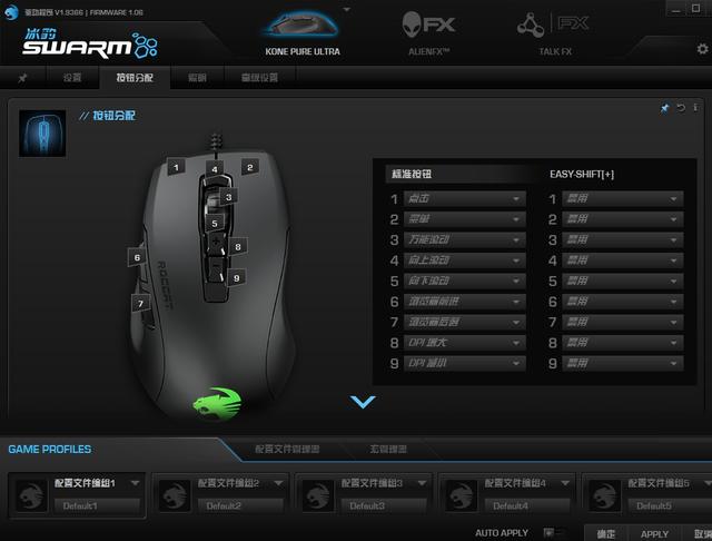 这款鼠标支持冰豹的的SWARM软件,支持对鼠标按键自定义、宏设置等等。