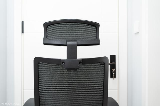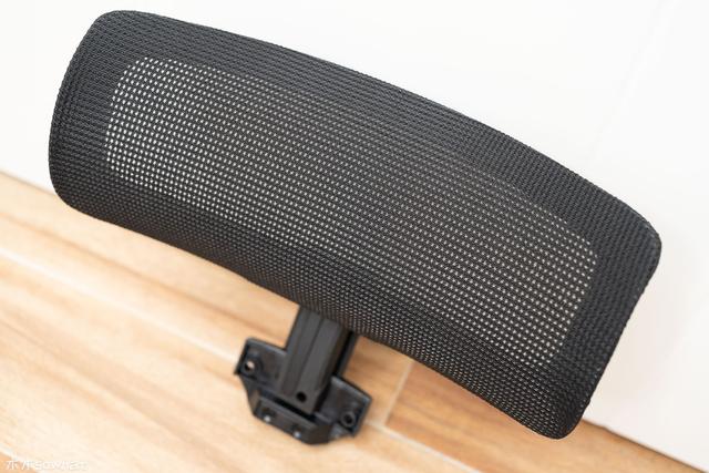 头枕和椅背的材质相同,同样为一体化的网布设计,头枕可以通过螺丝和椅背连接在一起。