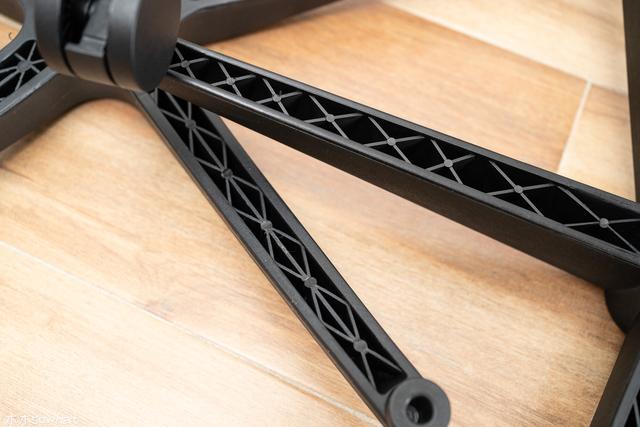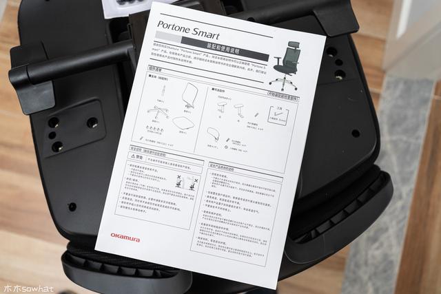 安装上,冈村也提供了说明书, 正常的安装流程比较简单,先把尼龙底坐底部的轮子安装在底坐上,再插上气压棒,将底坐和椅背组合起来后,再安装扶手,将坐椅放置在气压棒上,安装上头枕后就安装完成了。