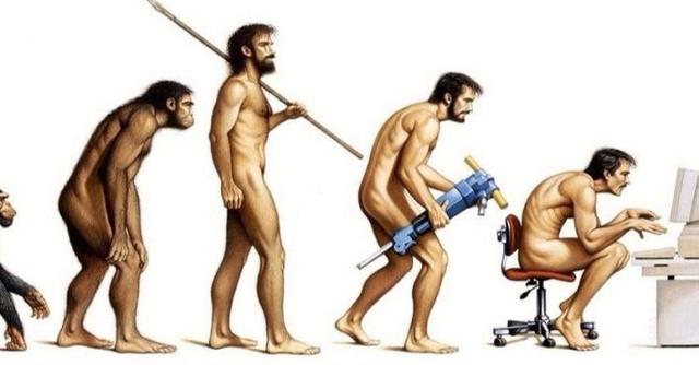 不知道大家有没有看过这张图,人类从猴子进化成人,在经过进化让脊柱、骨盆从猴子的脊柱变为了人类的脊柱。而生活中