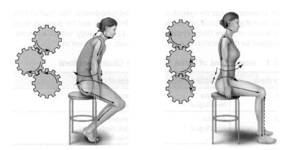 楼主也找了网上几张坐姿图,人体的脊柱就像是几个齿轮一般,向前探身坐着容易让脊柱承受更大的压力,久而久之容易脊柱容易变形,身体向前倾斜时,腹肌不需用力,但腰背部的肌肉会像拉紧的弓弦一般用力拉着躯干,长时间持续的收缩发力,使腰部肌肉不堪重负,甚至产生疼痛和痉挛。