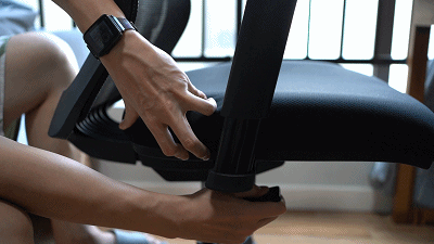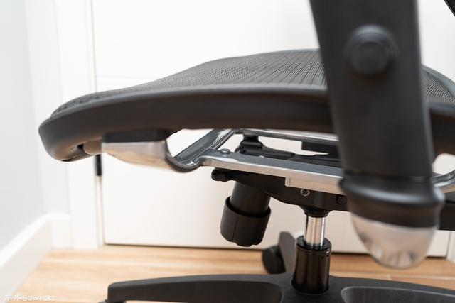 坐垫支持 52mm 的前后调节,这样的调节范围能让使用者的腰部更好的贴近背靠,也能根据自己的身高给双腿合适的承托。