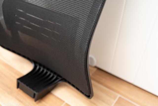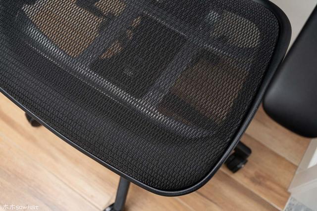 冈村Portone的椅背为网状设计,可以看到采用了纵横编织的结构,做工上看编织线横平竖直,不会像楼主之前用过的坐姿椅网布歪歪斜斜,冈村Portone这个椅背的网布边角也较为光滑,用料实在,质感还是不错的,能对背部形成良好的支撑。