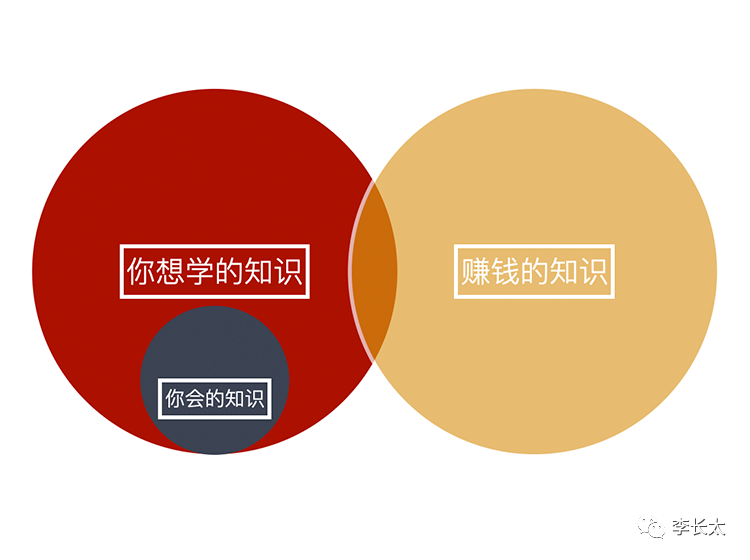 知识可以分成两类:一类是你想学的知识、感兴趣的知识,一类是可以赚钱的知识。如果在学习知识时,只关注你的兴趣,但是没有考虑是否能赚钱,就会形成上面图片的情况。那就是,你看了很多书,你并不赚钱,你的生活水平并不会提高。