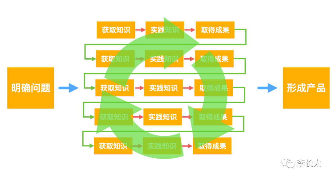 获取知识:获取知识的方式有很多,比如线下课、看书、听录音、看文章、请教专家,针对一个问题的学习,要提前做好规划,组合好各种学习方式,我们要选择最有效的学习方式,而不仅仅是自己喜欢的学习方式。实践知识:从别人那学来的知识,是基于对方的环境、场景总结出来的经验,到你的环境、场景下未必完全有效,需要进行实践的检验,这个过程可能会组合多种方法,达到理想的效果。取得成果:我们学习一定是以成果为导向的,能够取得成果是我们学习的目标。形成产品:我这里说的形成产品,指的是通过解决问题的过程,提升了自己的能力和经验,开发可以帮自己赚钱的产品。我知道有人成功减肥120斤后,将减肥这项服务作为自己的产品,开设减肥训练营,传授别人减肥方法,成为自己的事业。在五步学习法中,我是为了演示学习的过程,从宏观的视野来讲解,用五步的概念。
