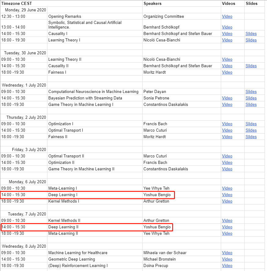 地址: http://mlss.tuebingen.mpg.de/2020/index.html