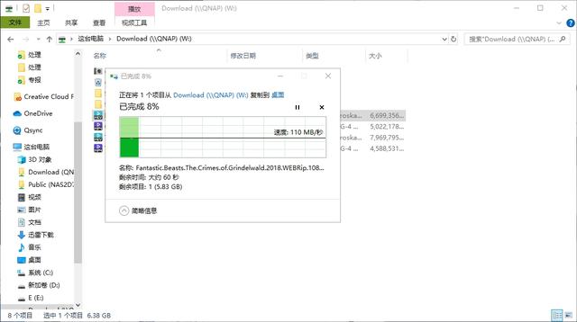 可以根据自己的需要将硬盘创建为不同的存储池使用,如果使用固态硬盘可以将固态硬盘设置为缓存对机械硬盘加速,也可以设置为分层存储,系统会根据数据的不同自动将其保存在固态硬盘或是机械硬盘中。对NAS中的硬盘进行读写测试,读写均能达到110MB/s,这样的速度已经跑满千兆了,可以满足日常影音及文件分享需求。