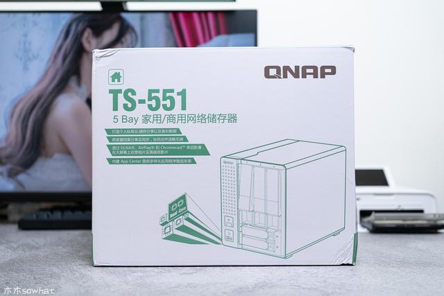 先来看下包装,一改以往威联通的牛皮纸包装,这次变成了绿白相间的设计,更符合家用电子产品的外观风格。