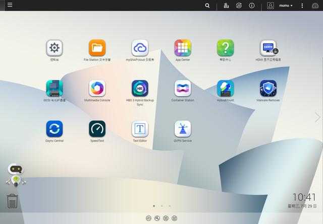 安装完成,进入登录界面,输入设置的帐号、密码,登陆。NAS的系统桌面就出来了,类win桌面,整体还是比较简约的。