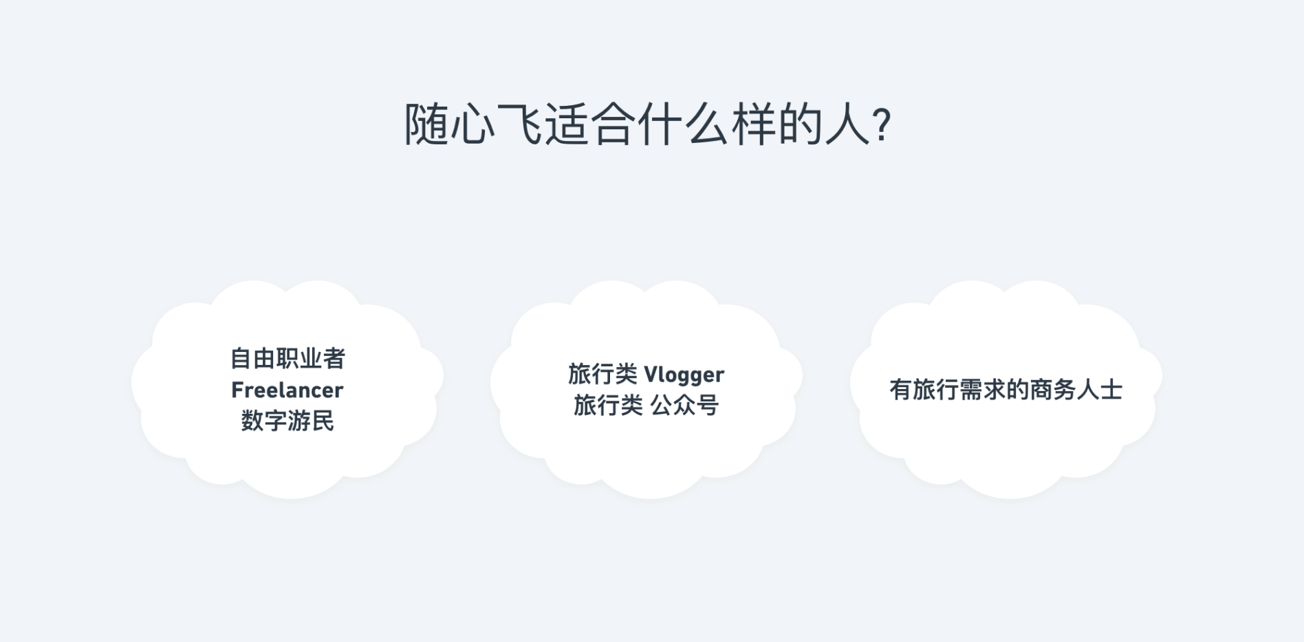 - 自由职业者/Freelancer/数字游民:这些人的特点是工作并不受时间和地域的限制,在特定的时间内完成自己的工作就可以,并不要求你一定要在办公室,那么在这种情况下,你可以选择借助随心飞产品,来到一个陌生的城市,然后住上一段时间,体验一下。
